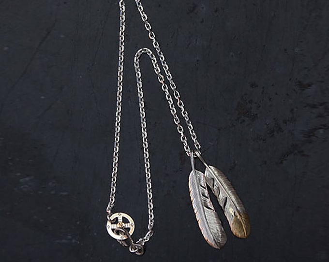 Silver Feather Pendant – 18k Gold Tipped Native American Inspired Necklace, Handmade Boho Tribal Jewelry